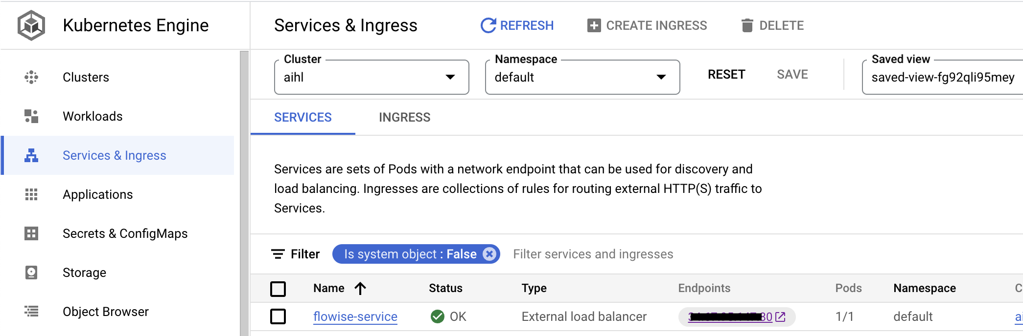 6. Go to `Services & Ingress`, you can click the `Endpoint` where the Flowise is hosted.