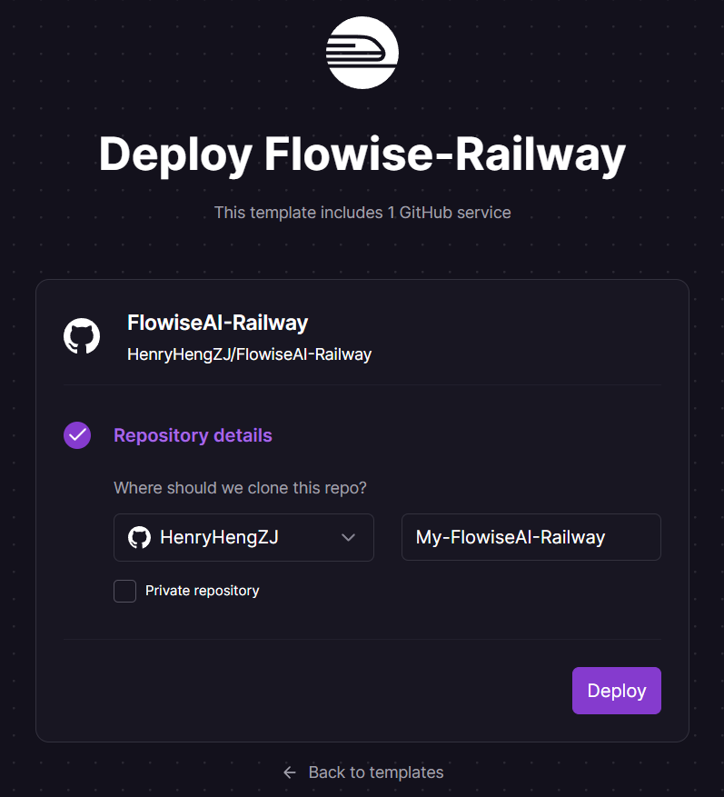 3. Change to your preferred repository name and click Deploy