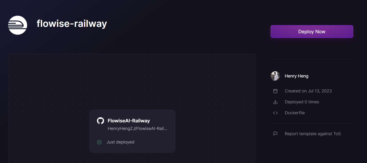 That's it! You now have a deployed Flowise on Railway [🎉](https://emojipedia.org/party-popper/)[🎉](https://emojipedia.org/party-popper/)