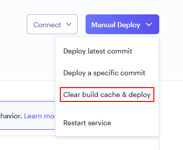 4. Click **Manual Deploy** then select **Clear build cache & deploy**