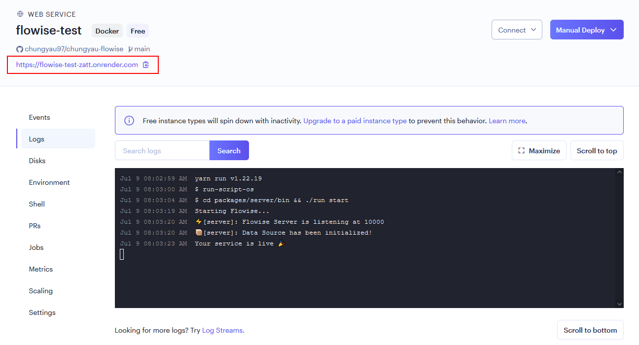 * LOG\_PATH - `/opt/render/.flowise/logs`