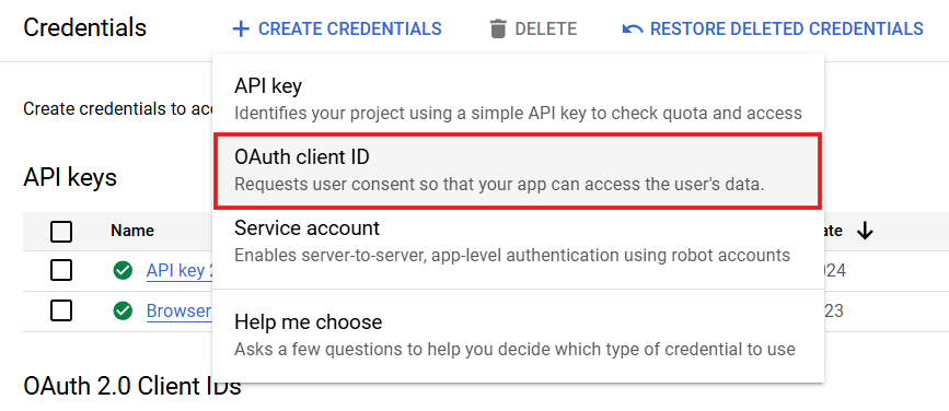 To enable Sign In With Google on your website, you first need to set up your Google API client ID. To do so, complete the following steps: