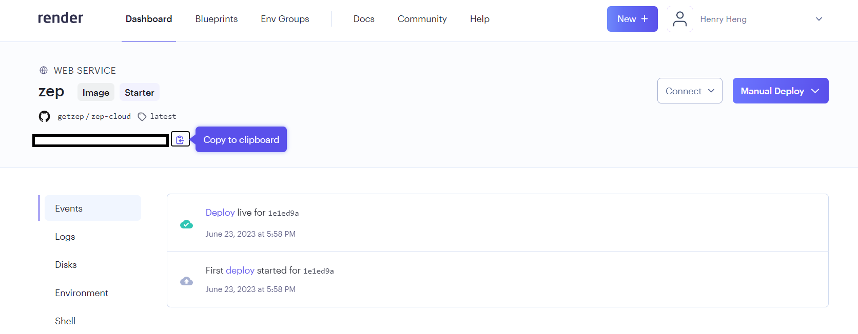 4. Simplemente haz clic en la primera llamada **zep** y copia la URL desplegada