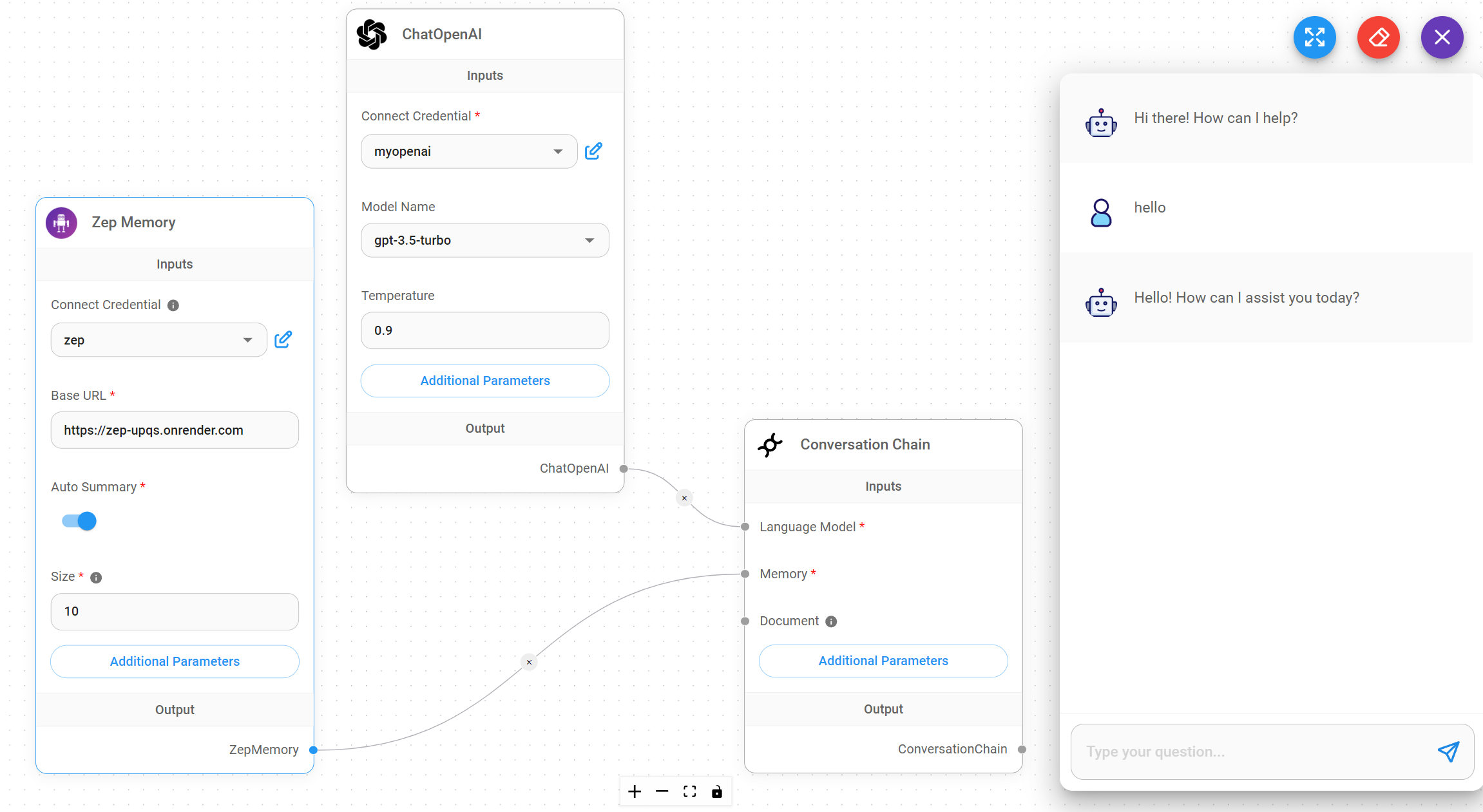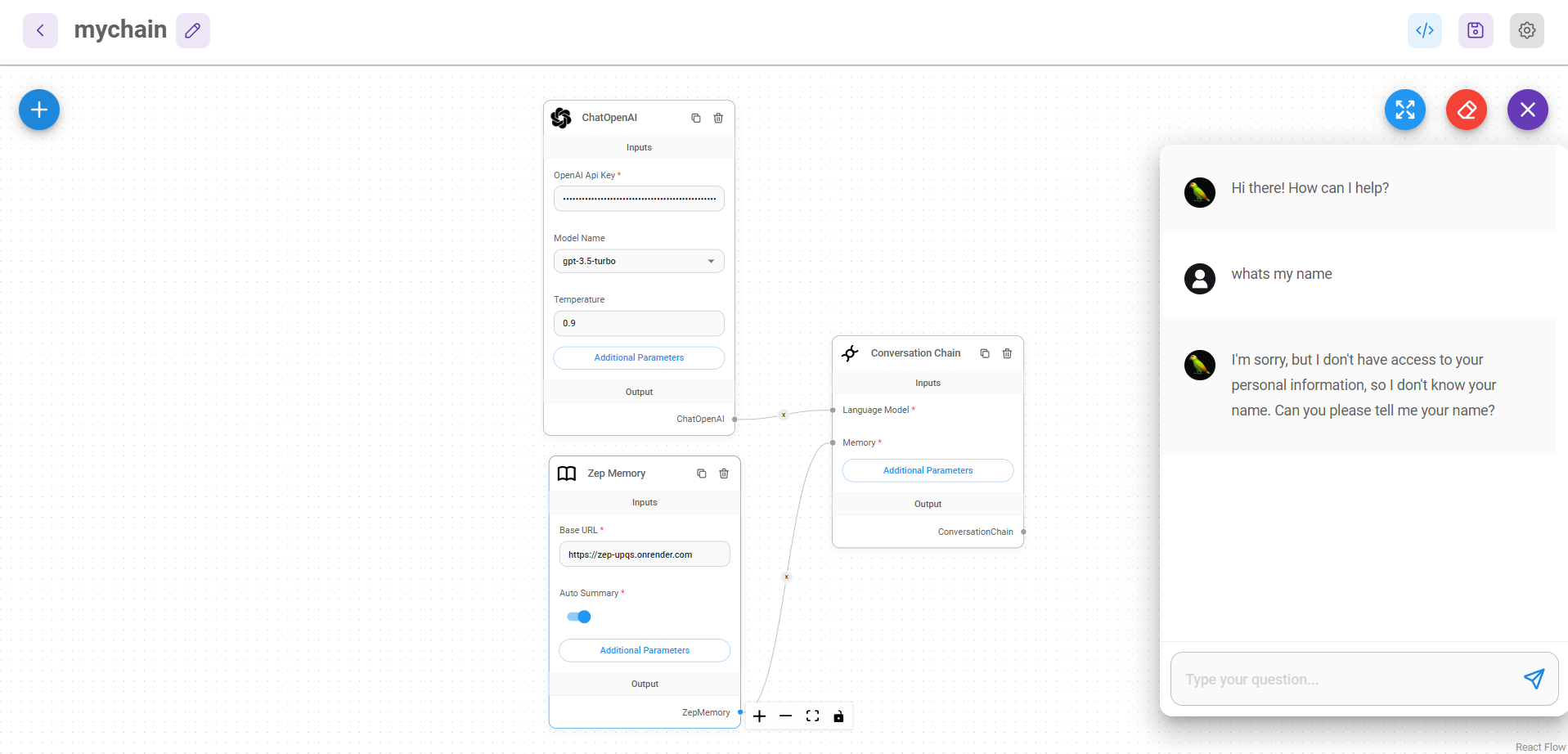 3. Guarda el chatflow y pruébalo para ver si las conversaciones son recordadas.