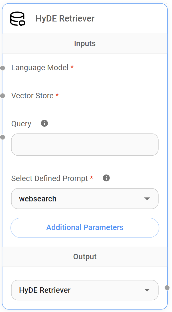 <figure><img src="https://4068692976-files.gitbook.io/~/files/v0/b/gitbook-x-prod.appspot.com/o/spaces%2FUiD7nOmFRK805sNuiieJ%2Fuploads%2Fgit-blob-c622470eca1de8b89b35beecbefb6483f746e822%2Fimage%20(143).png?alt=media" alt="" width="302"><figcaption><p>Nodo HyDE Retriever</p></figcaption></figure>