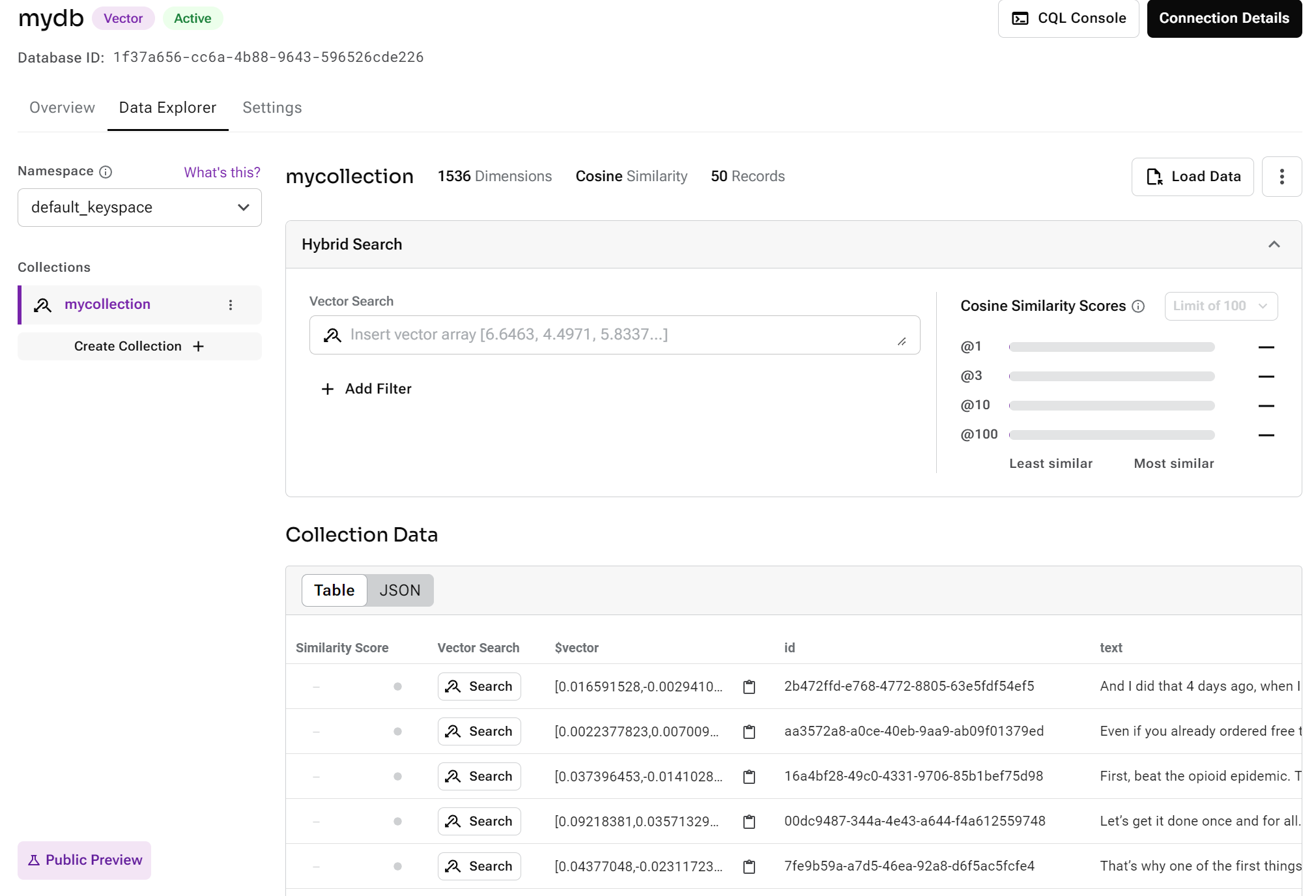 9. Navega de vuelta al portal de Astra, y en tu collection, podrás ver todos los datos que se han insertado: