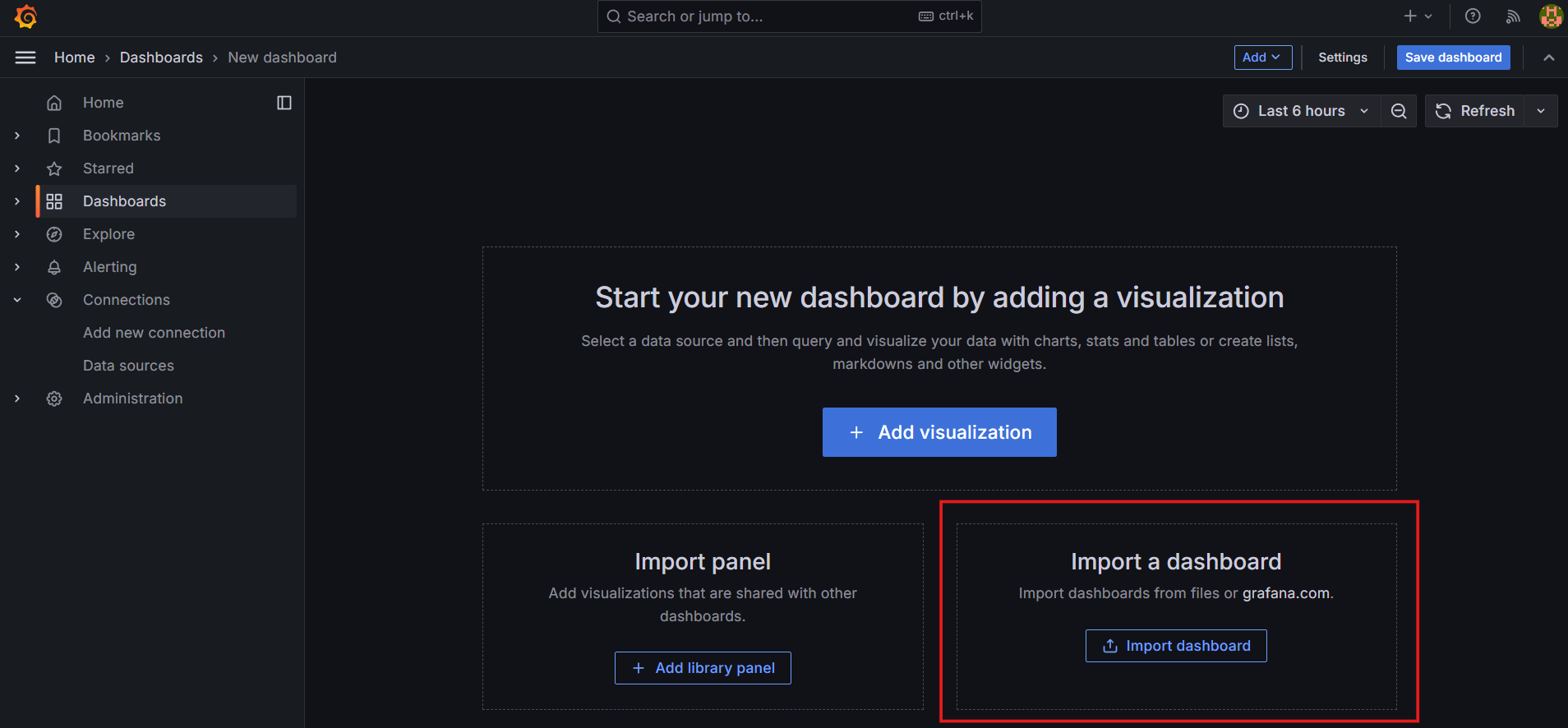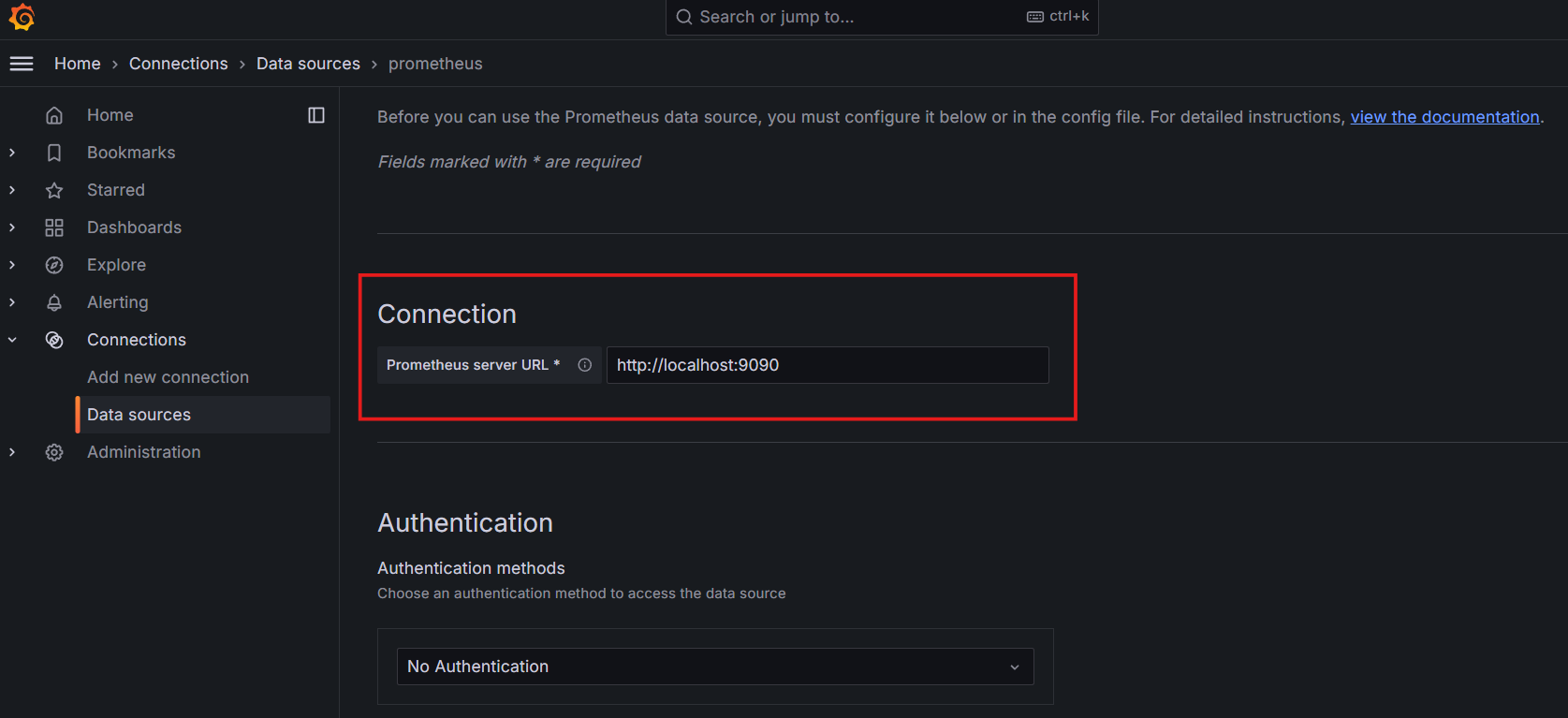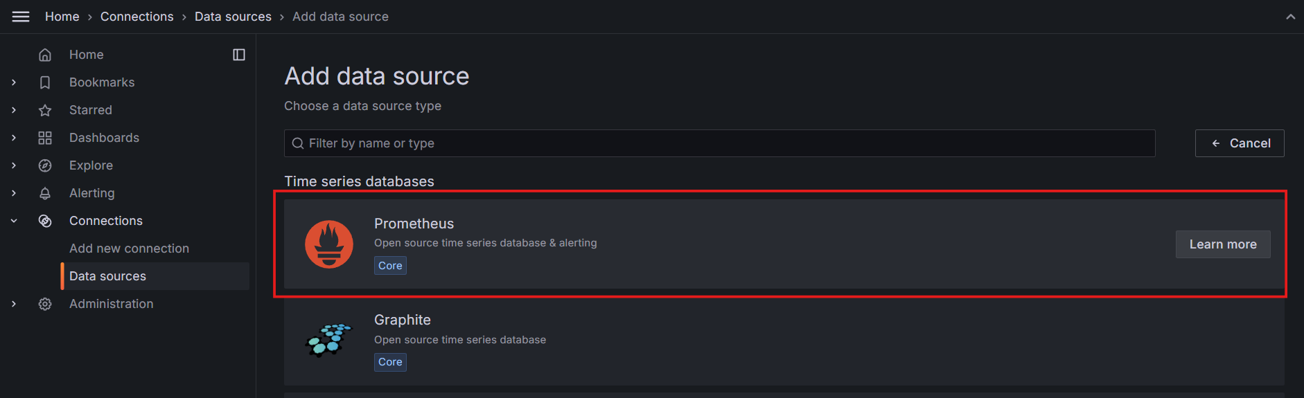 En la barra lateral izquierda, haz clic en Agregar nueva conexión y selecciona Prometheus: