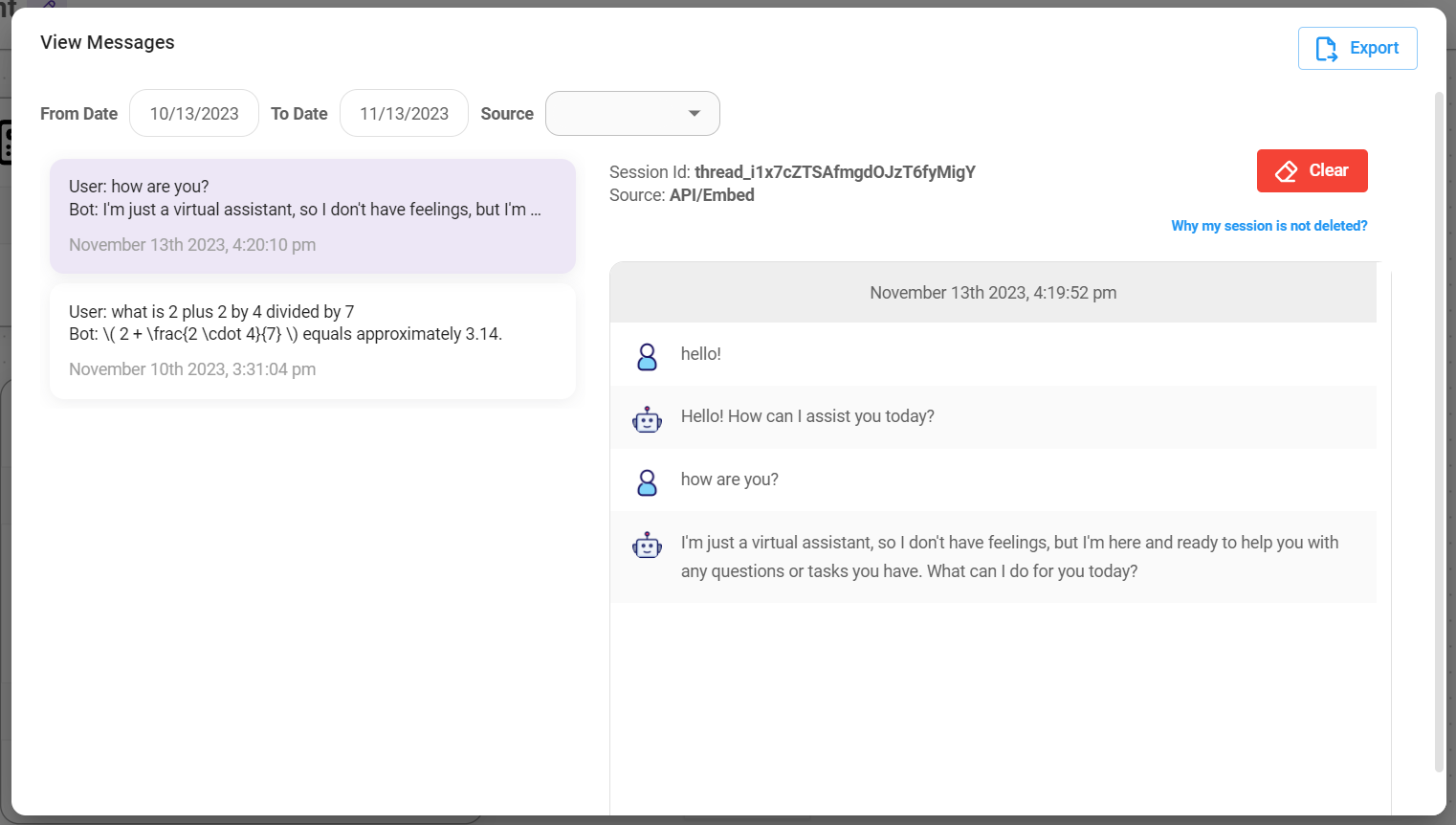 All conversations can be visualized and managed from UI as well: