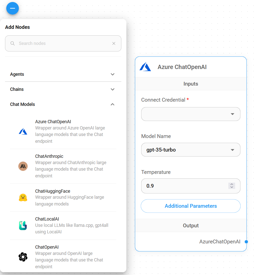 1. **Chat Models** > drag **Azure ChatOpenAI** node