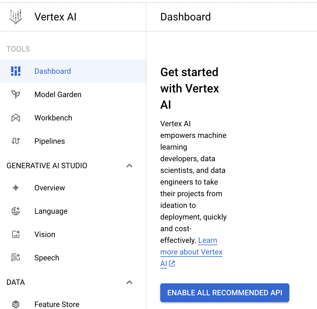 1. Go to Vertex AI on GCP and click **"ENABLE ALL RECOMMENDED API"**