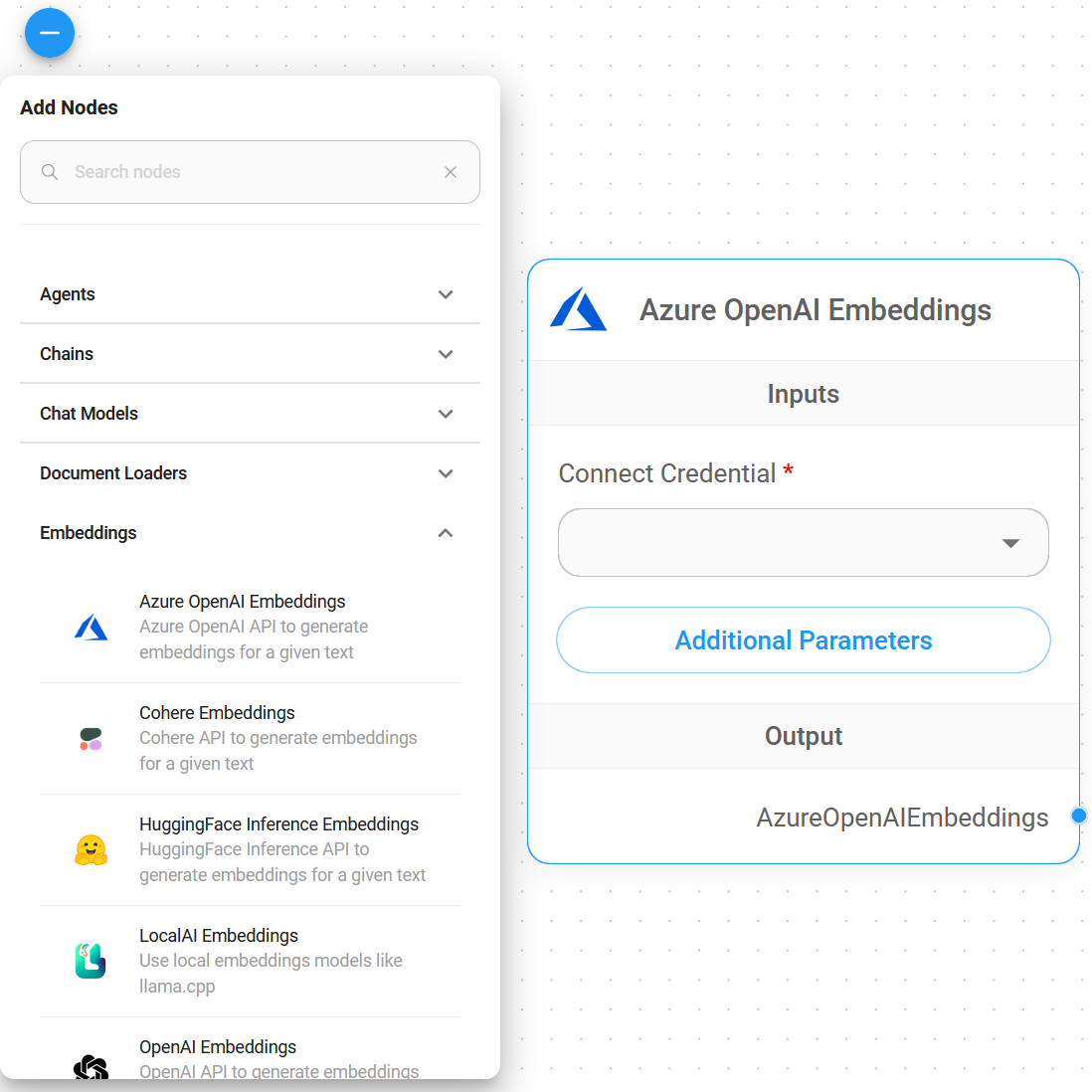 1. **Embeddings** > drag **Azure OpenAI Embeddings** node