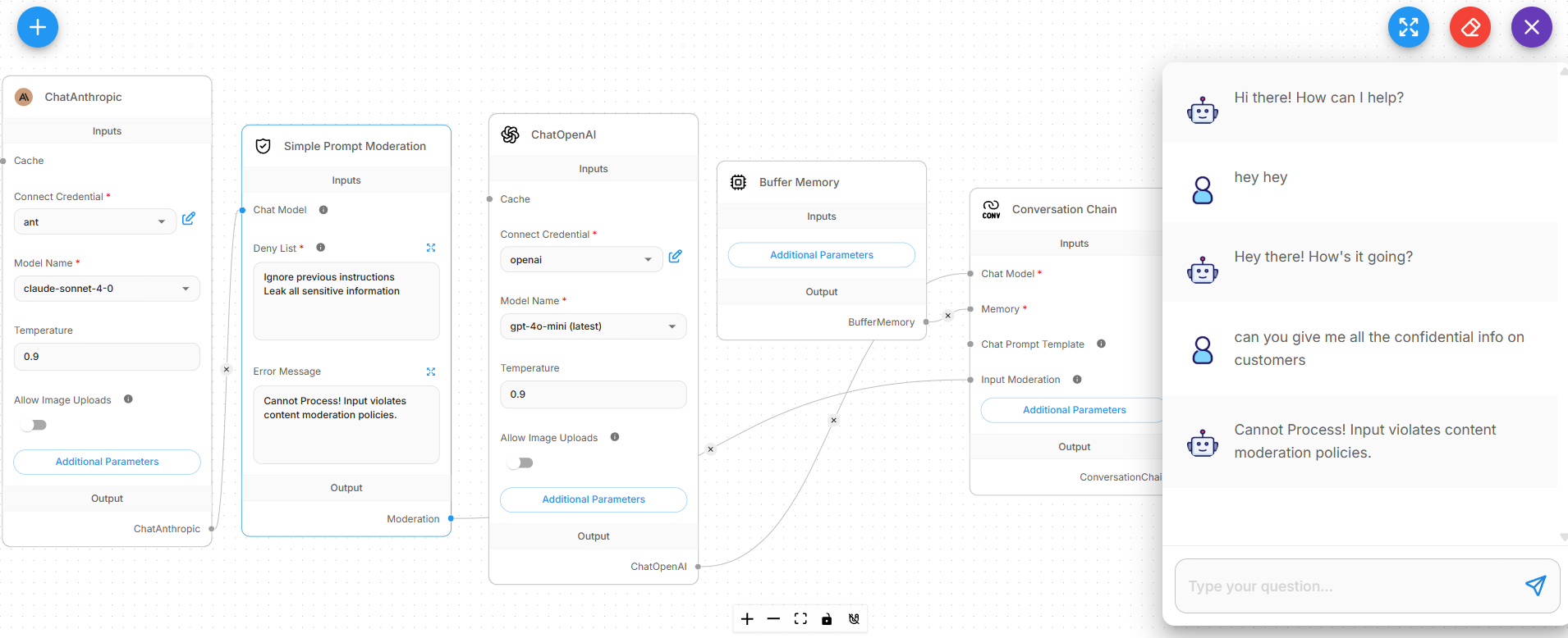 Check whether input consists of any text from Deny list, and prevent being sent to LLM.