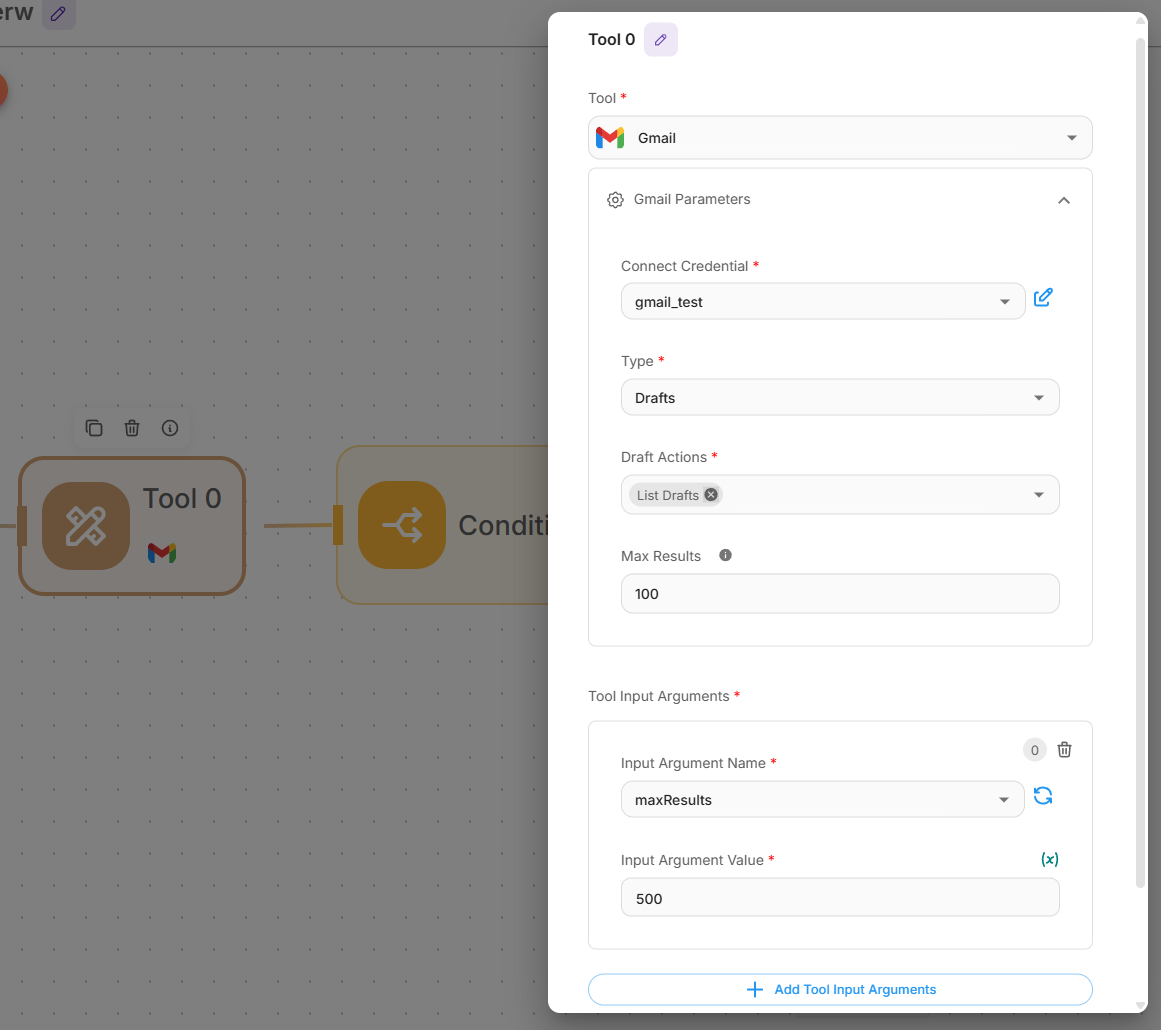 It can also be used as a Tool Node in a determined workflow scenario. For example, retrieving a list of draft messages before proceeding to the next step.\