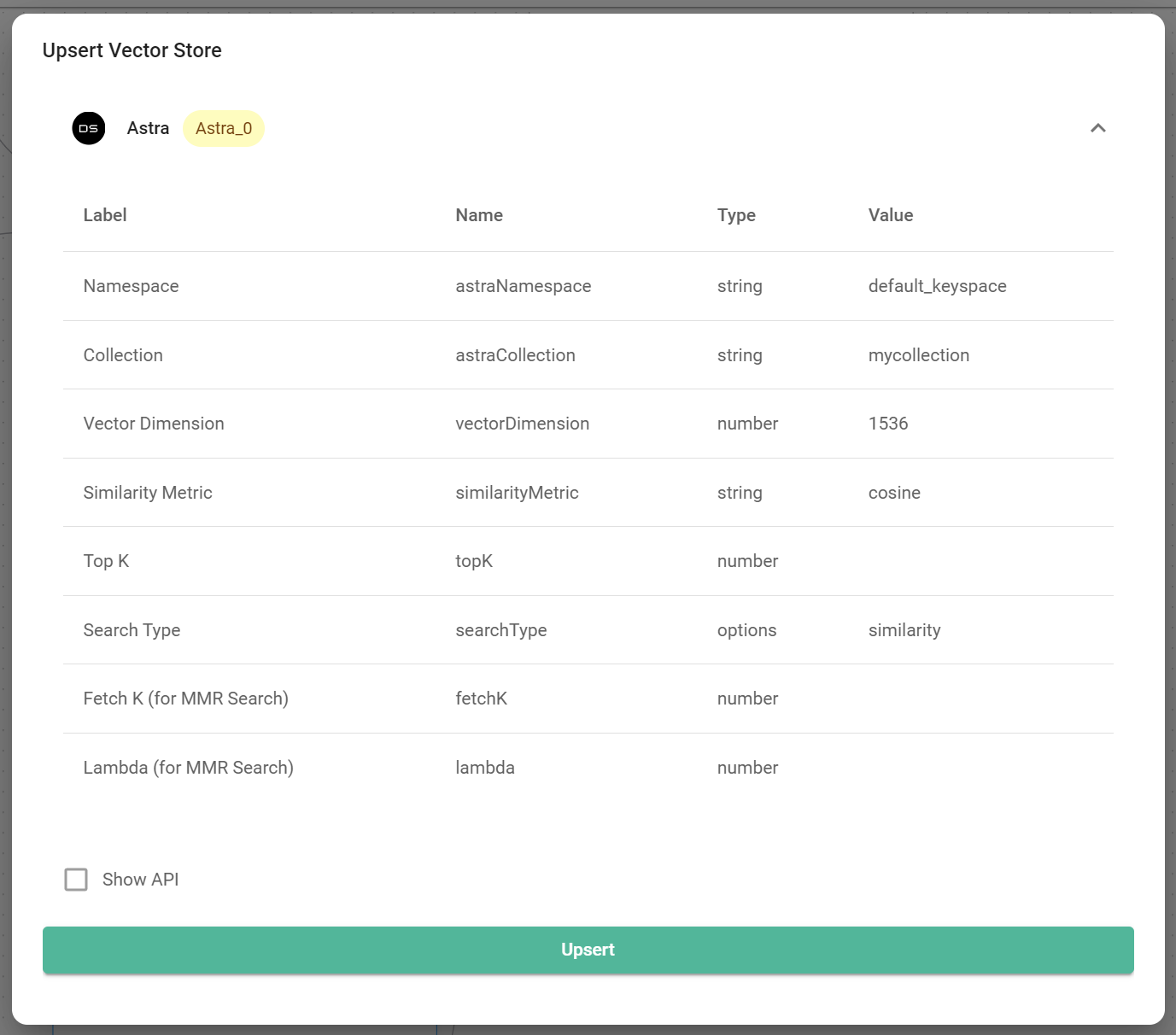 8. You can now upsert data to AstraDB