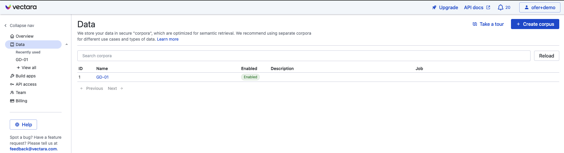 Name the corpus to be created and click **Create Corpus** then wait for the corpus to finish setting up.