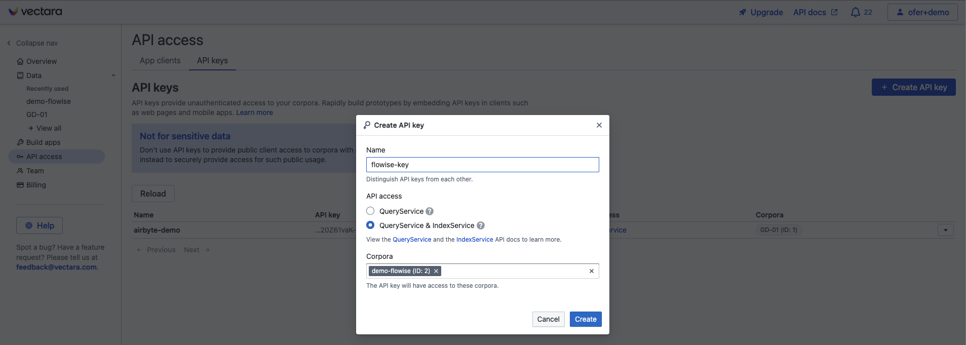 1. Register an account for [Vectara](https://vectara.com/integrations/flowise)
