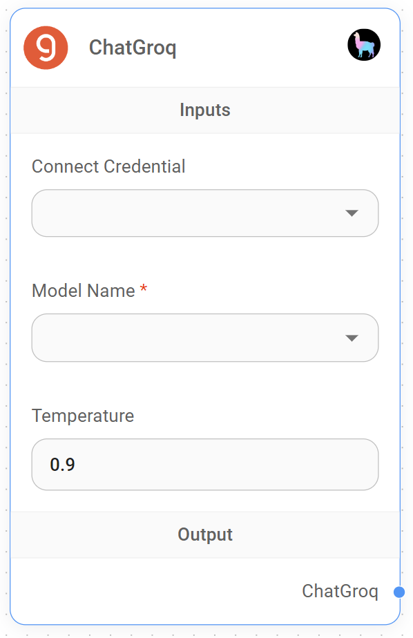<figure><img src="https://823733684-files.gitbook.io/~/files/v0/b/gitbook-x-prod.appspot.com/o/spaces%2F00tYLwhz5RyR7fJEhrWy%2Fuploads%2Fgit-blob-751d6921d83a7cd421e7ad5aeda942de45be8f40%2Fup-015.png?alt=media" alt="" width="299"><figcaption><p>ChatGroq Node</p></figcaption></figure>