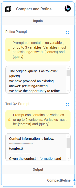 Compact the prompt during each LLM call by stuffing as many text chunks that can fit within the maximum prompt size. If there are too many chunks to stuff in one prompt, "create and refine" an answer by going through multiple compact prompts.