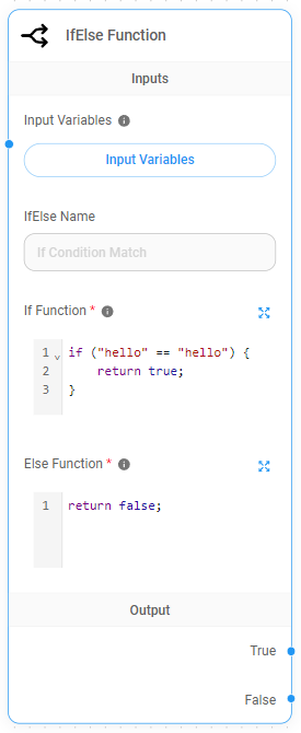 Otherwise, the returned value from [Else Function](#else-function) will be passed to the **False** output dot.