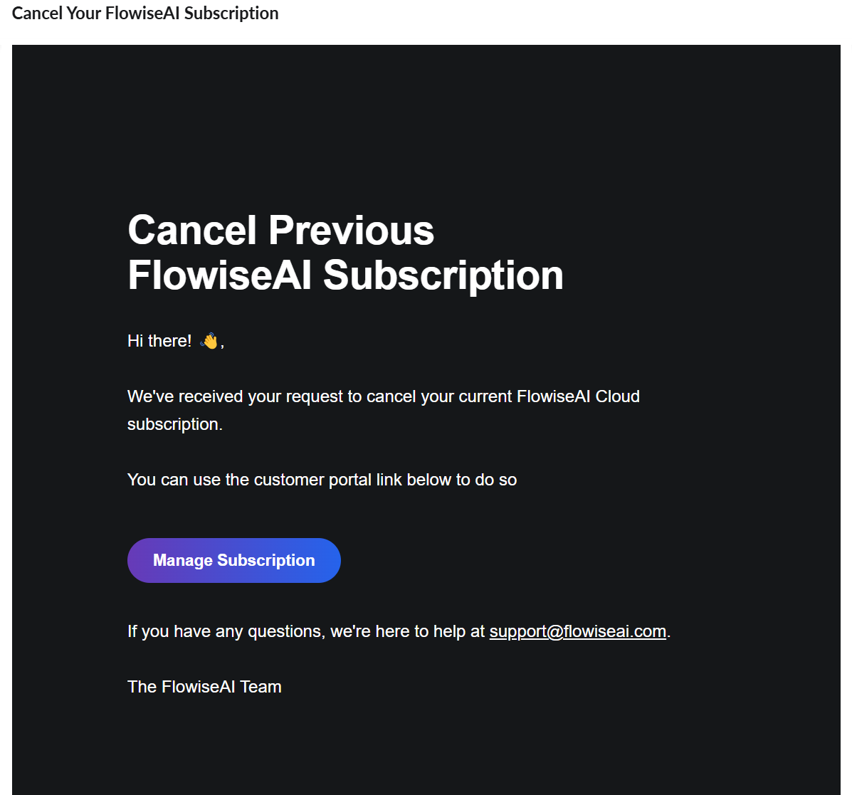 17. Clicking the **Manage Subscription** button will bring you to a portal where you can cancel the Cloud V1 subscription. Your Cloud V1 app will then get shut down on the next billing cycle.