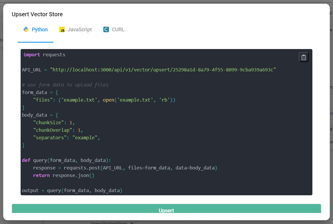 It comes with the new API - `/api/v1/vector/upsert`: