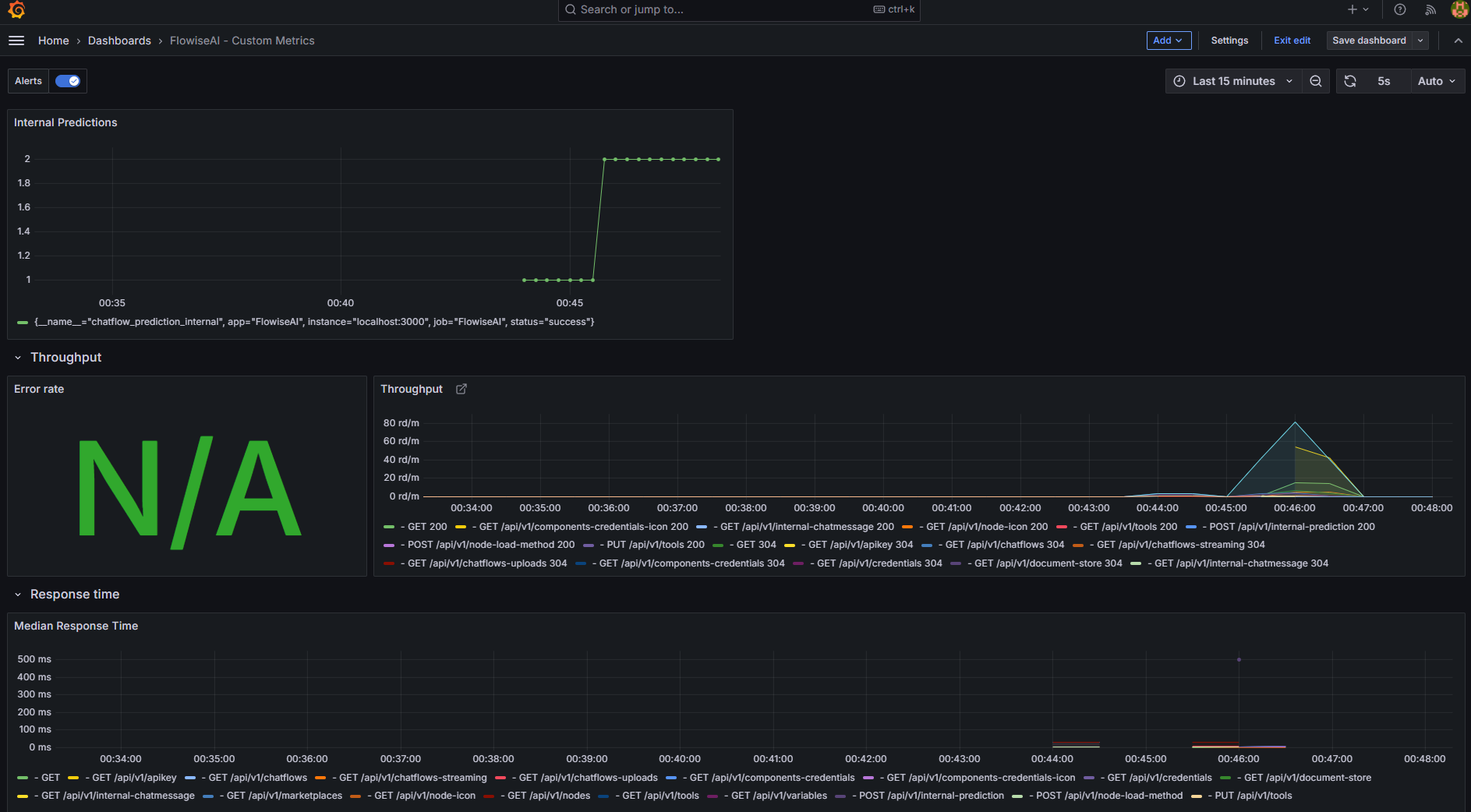 Now, try to perform some actions on the Flowise, you should be able to see the metrics displayed: