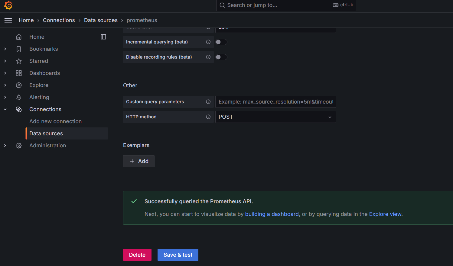 The `/api/v1/metrics` endpoint is available for Prometheus to pull metrics from, but requires API key authentication as configured above.